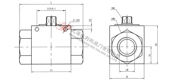 简略型号 PN(bar) DN LW RA d1 i L L1 B L2 h1 h2 SW1 SW2 D h3
