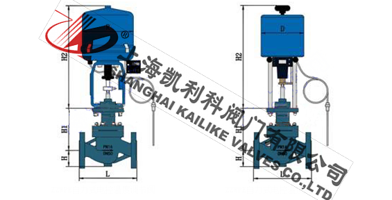 由单座调节阀、电动执行机构、温度传感器和温度调节器等部件组成,根据用户需要,分别有加热型与冷却型两种结构。加热型调节阀的结构与原理,工作前主阀芯处于半开位置,传感器处于自然状态。接上电源,主阀芯全开。介质由箭头方向流入主阀体、经阀芯对储热箱进行加热。当温度升到相应设定值时,传感器即产生相应线性信号输入一体化执行机构,随即驱动阀杆、阀芯产生位移,关闭主阀芯停止加热。当温度低于设定值时,传感器即产生线性信号输入一体化执行机构,驱使阀芯渐开,使介质按抛物线特性流入储热箱,进行加热直至设定值。这样被控介质始终在设定温度范围内被控制,从而达到控温目的。
