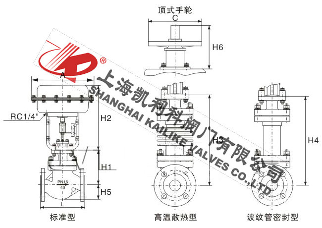 上  阀  盖 标准型:-17-230℃  散热型:230-450℃  低温型:-60--196℃  波纹管密封型:-40-350℃