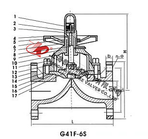 G41F-6S型UPCV隔膜阀、UPVC塑料隔膜阀适用于腐蚀介质的输送及截流、流量的调节,根据材质不同使用温度-14℃~100℃、-40℃~140℃。过流部件C采用RPP或PVDF注塑件组装而成,耐腐蚀性能优良,操作方便,体量轻,能代替不锈钢阀门。密封件膜片采用F46或PFA制造,耐折次数≥1200次,耐腐蚀性能与F4相当。