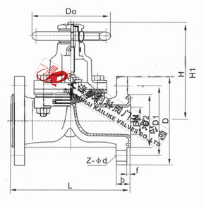4、阀体与盖被中间隔膜隔开,使得隔膜上方的阀盖,阀杆零件不受介质侵蚀;