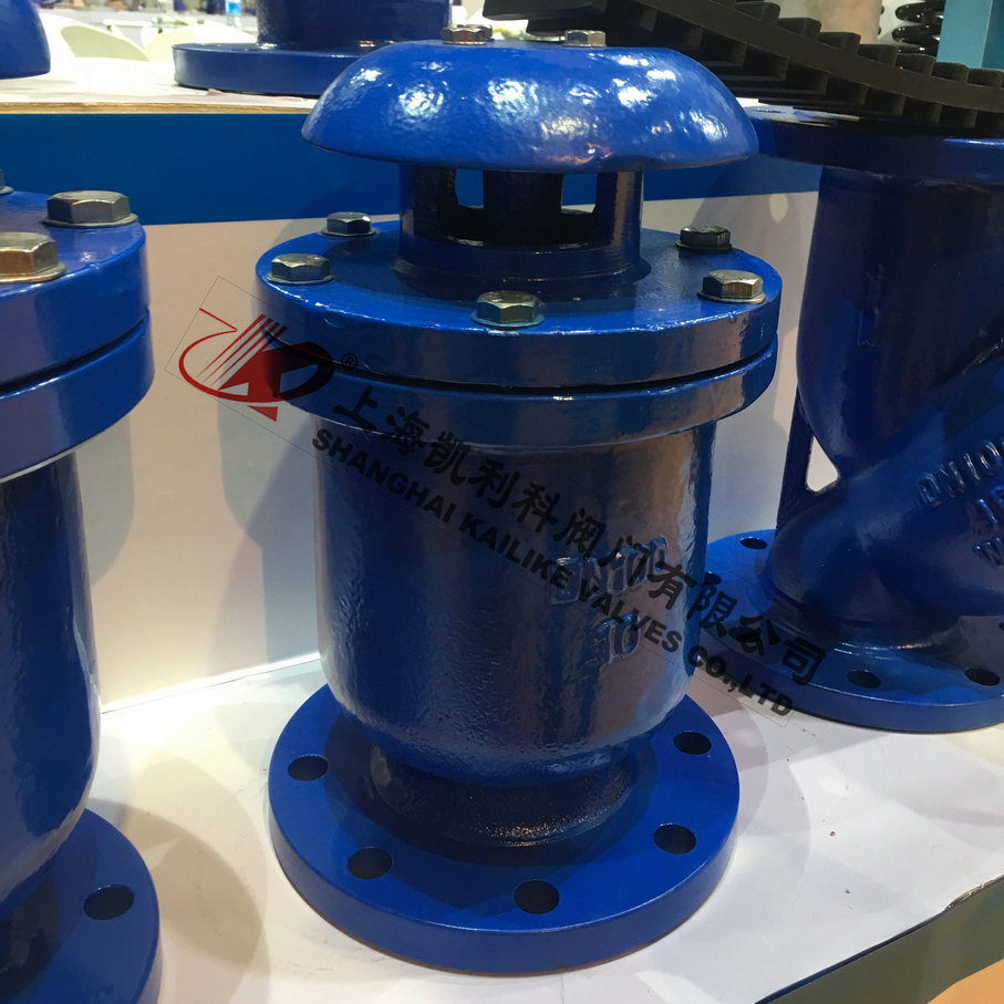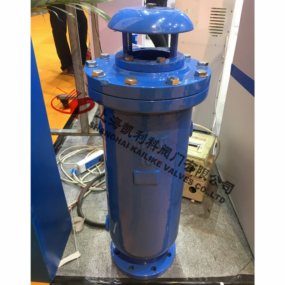 当管内开始注水时,塞头停留在开启位置,进行大量排气,当空气排完时,阀内积水浮球被浮起,传动塞头至关闭位置,停止大量排气;当管内水正常输送时,如有少量空气聚集在阀内到相当程度,阀内水位下降,浮球随之下降,此时空气则由小孔排出。当抽水机停止,管内水流空时,或遇管内产生负压时,此时塞头开启,吸入空气确保管线安全。