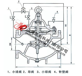 900X消防紧急关闭阀当出口压力低于导阀设定的压力时,导阀此时处于开通状态,主阀上腔压力与主阀出口压力相等,进口与吃口存在压差,水流经阀口出口流出,当消防泵气泵时,或变平泵压力升高时,超过导阀设定压力,由主阀进口向导阀管控制室压力升高,作用在弹簧压力增大,向下压紧,带动阀芯下移,使导阀关闭,此时主阀进口压力通过节流阀补充到主阀阀盖上腔,因阀瓣受到向下压力大于向上推力,主阀关闭。值得注意的是,进口压力小于设定压力是,主阀处于开启状态,进口压力大于设定压力,阀瓣关闭。