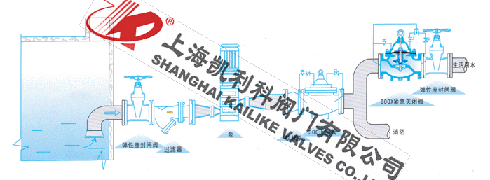900X消防紧急关闭阀用于生活供水和消防供水并联供水系统中,正常情况供生活用水,当火灾发生时消防用水时,阀门自动关闭生活用水,确保足够的消防用水。当消防停止用水时压力减少,阀门自动恢复生活用水,该阀使系统无须另设专门的消防单独供水管网,大大地节省了工程建设成本和日常的用水量。该阀控制灵敏、安全可靠、调试简单、使用寿命长。