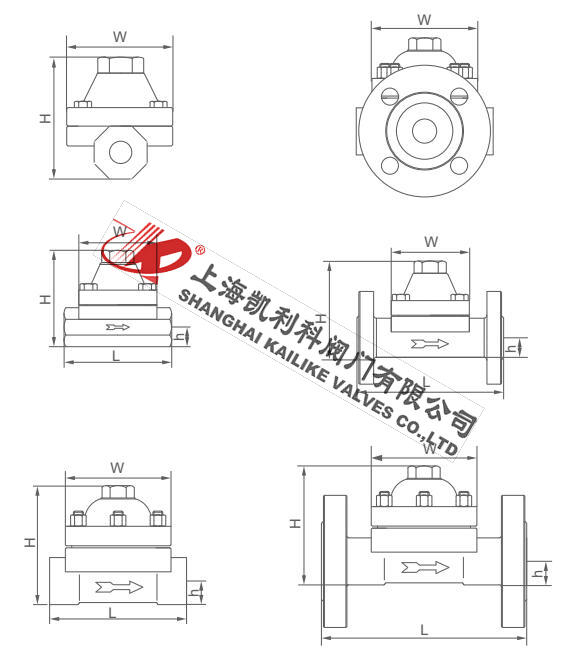 型号 口径DN L H h W