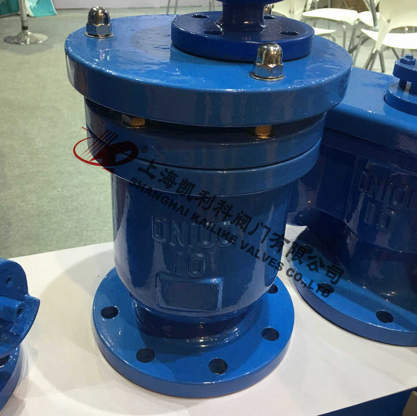P41X、P42X快速排气阀适用于工业介质为水的管路上,作为快速排除管道内气体的设备,以提高输送水设备的效率和保护管道不致变形破裂,是管道的必备之设备。能够排除管道中的气体,减少阻力节约能源。当管道负压时能快速自动吸入空气防止管道破裂。排气能力是普通双孔排气阀多倍。浮球托架为不锈钢,使用寿命长,安全可靠。阀为圆桶状式阀体,共内部主要有不锈钢浮球及塞头。本阀装设于泵埔出口处或送配水管线中,用以大量排除管道中的集结之空气,以增进水管及抽水机使用效率,且与管内一旦出现负压时,此阀能迅速吸入空气,以保管线因负压所产生损坏。