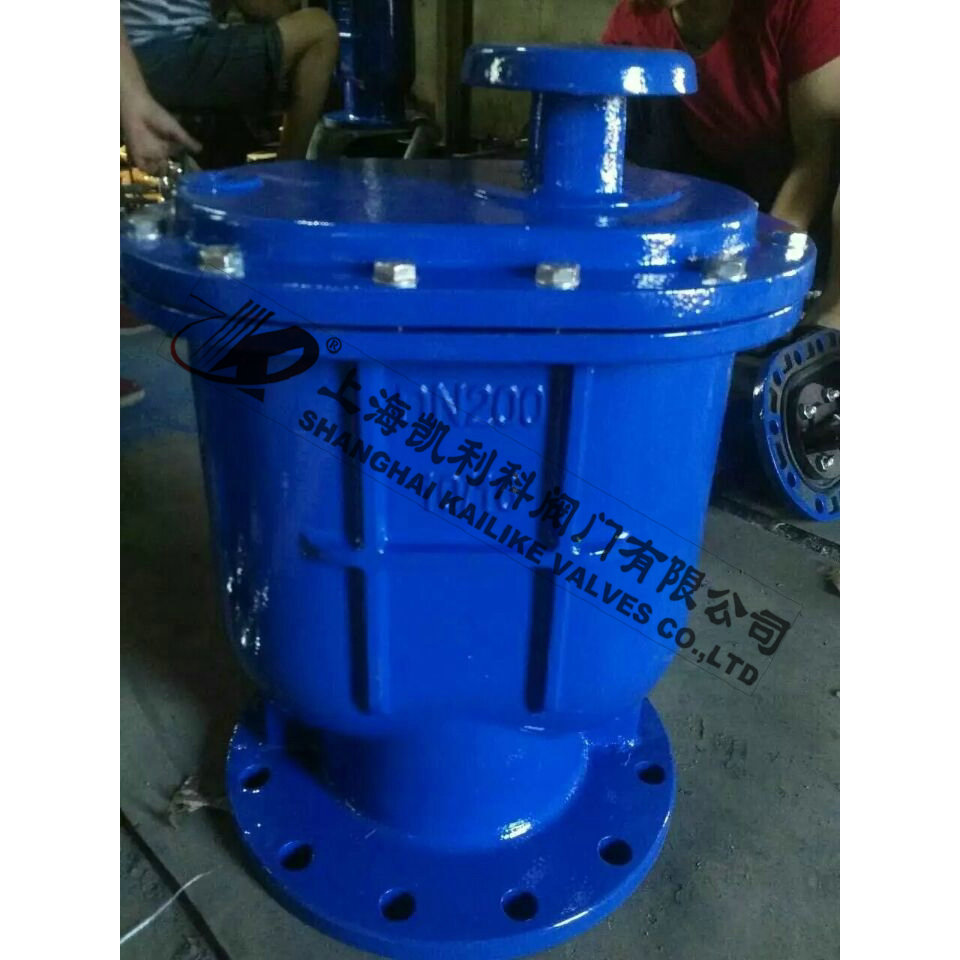 当管内开始注水时,塞头停留在开启位置,进行大量排气,当空气排完时,阀内积水浮球被浮起,传动塞头至关闭位置,停止大量排气;当管内水正常输送时,如有少量空气聚集在阀内到相当程度,阀内水位下降,浮球随之下降,此时空气则由小孔排出。当抽水机停止,管内水流空时,或遇管内产生负压时,此时塞头开启,吸入空气确保管线安全。