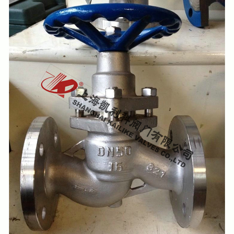 UJ41H不锈钢柱塞阀是由阀体、阀盖、阀杆,柱塞,导向、密封环、手轮等零件组成。当手轮旋转时,通过阀杆带动柱塞在导向套中上、下往复运动,使柱塞端部斜锥面与阀座锥面完成阀门的开启与关闭功能。