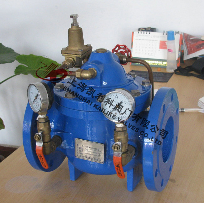 800X压差旁通阀主要由针阀,压差控制导阀,球阀,微型过滤器和压力表组成水力控制阀接管系统,通过专门设计导阀控制室,对压力变化信号进行比较,输出主阀开度信号,控制主阀开度,从而控制主阀出口压差在设定值上。